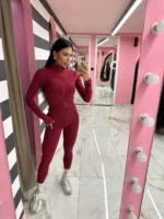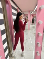 Μπορντό σετ με push-up κολάν και εφαρμοστή ζακέτα. Θηλυκό, άνετο και super ελαστικό, αναδεικνύει τη σιλουέτα και προσφέρει στήριξη χωρίς να διαφανίζει.