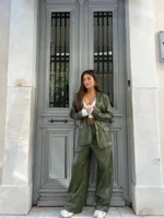 Το πιο stylish χακί σετ που συνδυάζει άνεση και δυναμισμό. Oversized σακάκι και παντελόνι με φαρδιά γραμμή, ιδανικά για καθημερινές αλλά και πιο βραδινές εμφανίσεις. Ένα χρώμα που αναδεικνύει κάθε επιδερμίδα.