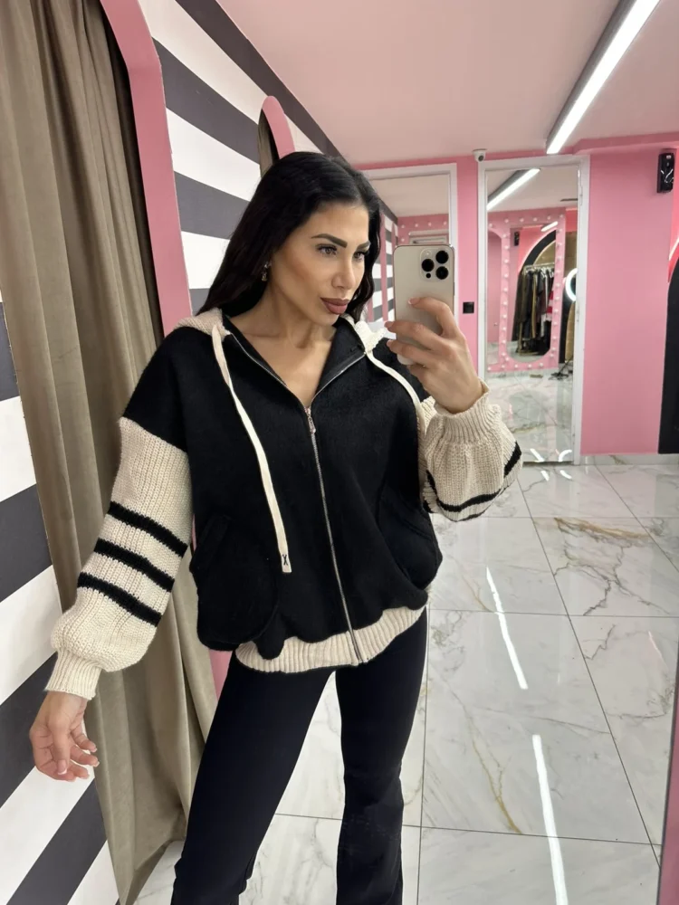 Zip Hoodie Black/Beige
