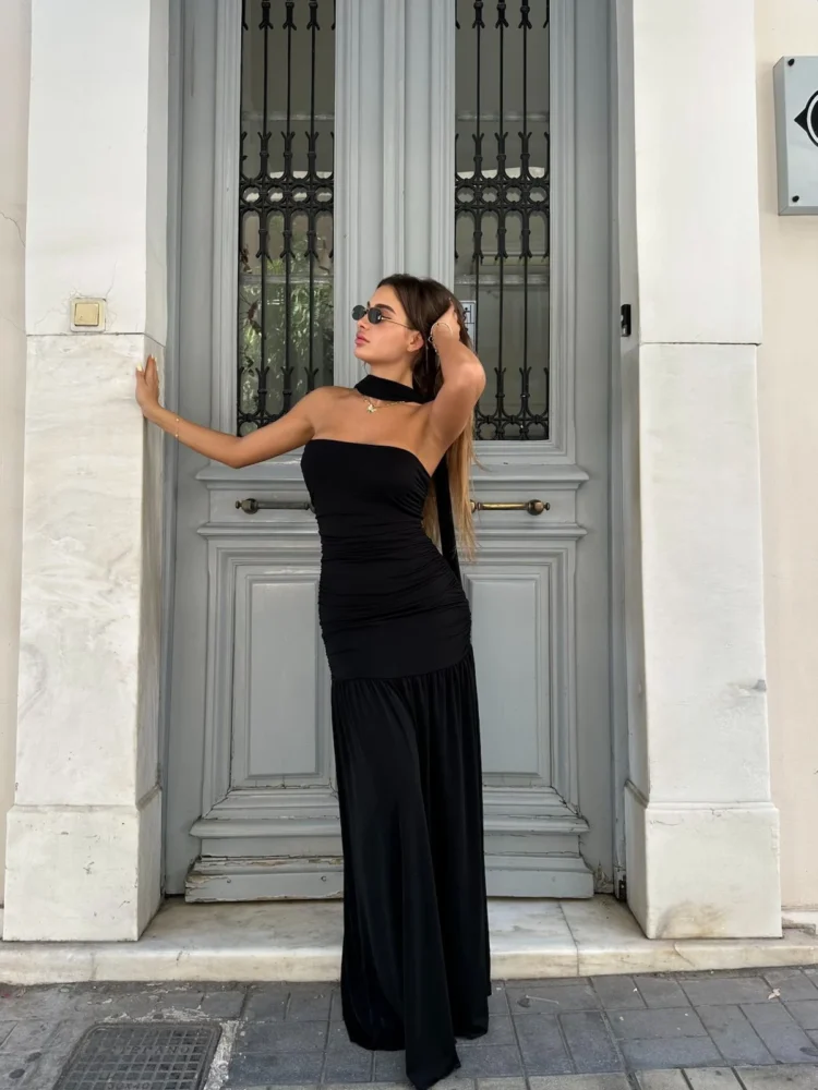 One Shoulder Mesh Maxi – Μαύρο