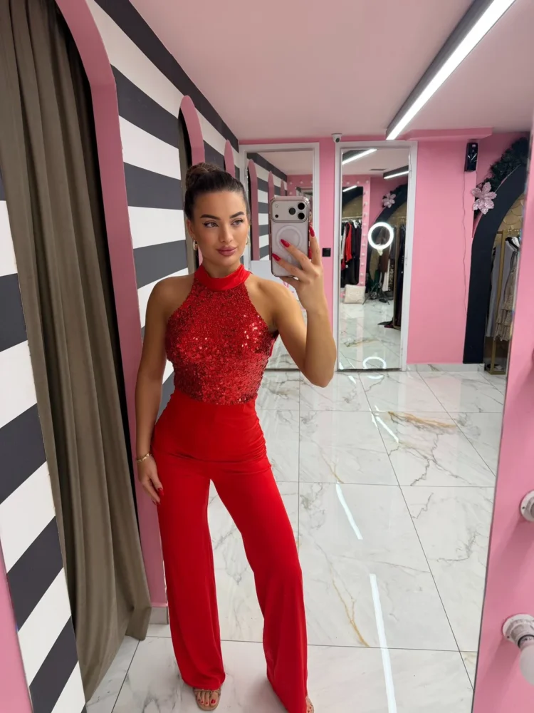 Red Diva Sequin Jumpsuit