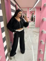 Το απόλυτο basic σετ για καθημερινές και sporty chic εμφανίσεις. Ζακέτα με φερμουάρ & παντελόνι με λάστιχο και κορδόνι στη μέση για άνεση όλη μέρα. Συνδύασέ το εύκολα με crop tops & sneakers. Καλύπτει έως XL.