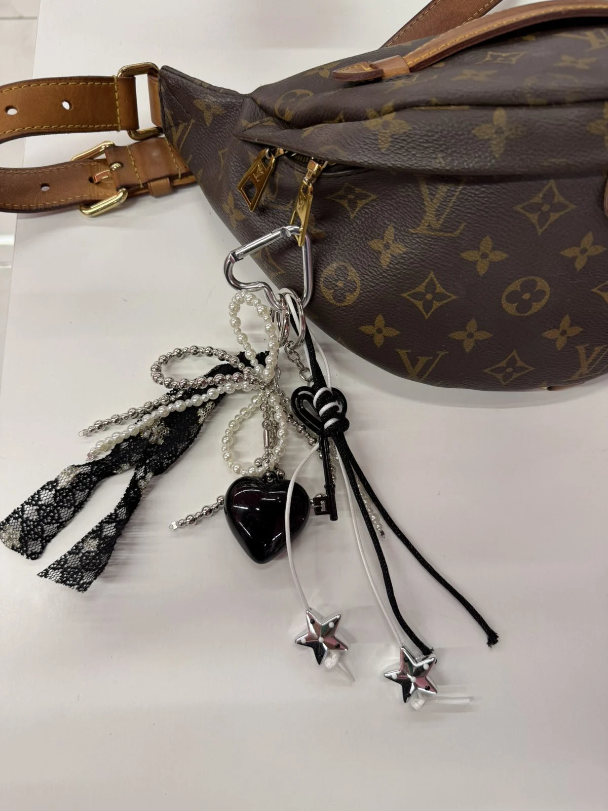 Ένα ξεχωριστό γούρι με μαύρη καρδιά, αλυσίδες με πέρλες και αστεράκια. Συνδυάζει girly και rock αισθητική, προσθέτοντας edgy πινελιά στο look σου.