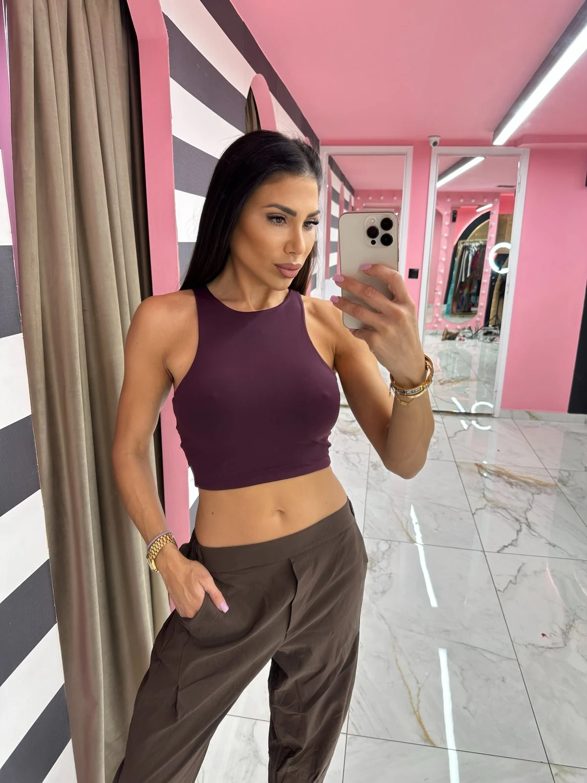 Μπορντό crop top που προσδίδει ένταση και θηλυκότητα σε κάθε look. Μια κομψή επιλογή για όλες τις ώρες.