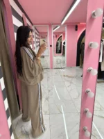 Άνετο σετ σε ζεστή cappuccino απόχρωση με sporty ρίγες στους ώμους και στα πλαϊνά. Oversized μπλούζα και φαρδύ παντελόνι για απόλυτη άνεση και στυλ σε καθημερινές εμφανίσεις.