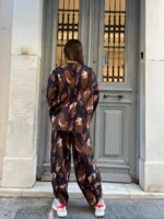 Ζεστό σοκολατί χρώμα με καλλιτεχνικό μοτίβο που τραβάει τα βλέμματα. Chic αλλά και cozy — τέλειο για πρωινές και απογευματινές εμφανίσεις με στυλ.
