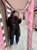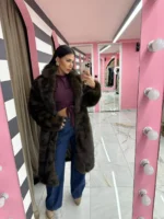 Εντυπωσιακή οικολογική γούνα σε σκούρο καφέ χρώμα με μαλακή και πυκνή υφή. Με ζώνη στη μέση και κουμπιά για κλείσιμο, προσφέρει άνεση και στυλ με glamorous αποτέλεσμα.One size – καλύπτει έως Extra Large