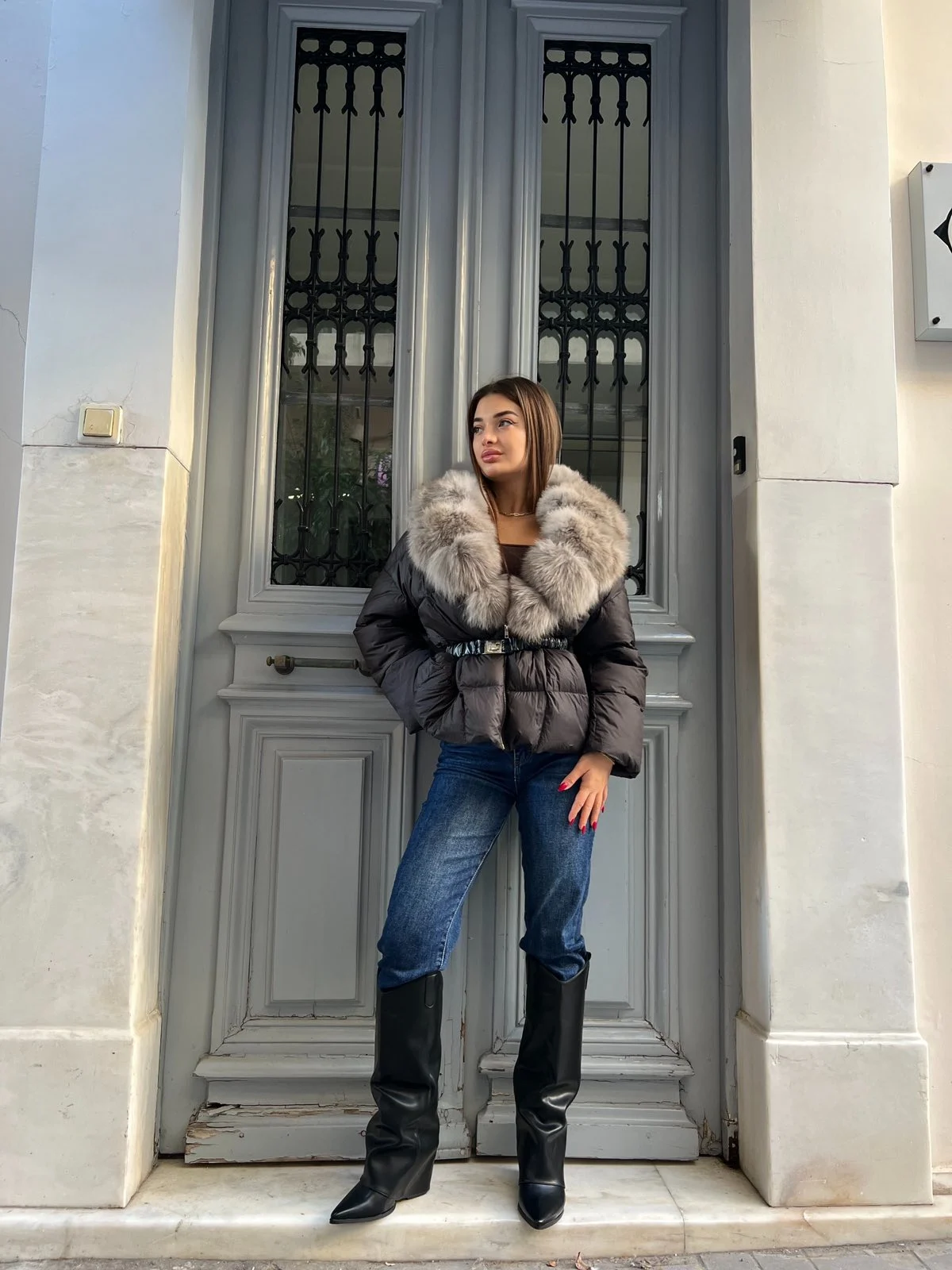 Το απόλυτο urban-chic κομμάτι του χειμώνα. Το Frost Black Belted Coat συνδυάζει minimal γραμμές με αληθινή γούνα σε εντυπωσιακό γκρι τόνο. Η ζώνη στη μέση τονίζει τη θηλυκή γραμμή, ενώ το πλούσιο γιακάς προσδίδει αίσθηση πολυτέλειας και κομψότητας. Ένα κομμάτι που δεν περνά ποτέ απαρατήρητο.