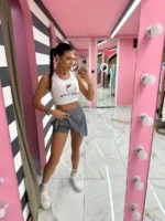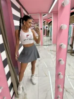 Αθλητική φούστα σε γκρι απόχρωση με ενσωματωμένο σορτσάκι. Ιδανική για sport chic εμφανίσεις με άνεση και στυλ.