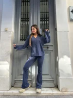 Σετ σε βαθύ μπλε, που συνδυάζει άνεση και διακριτική κομψότητα. Ιδανικό για όλες τις ώρες της ημέρας.