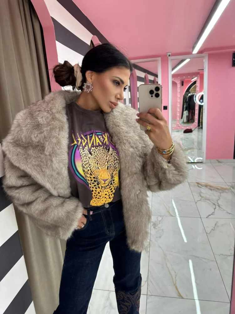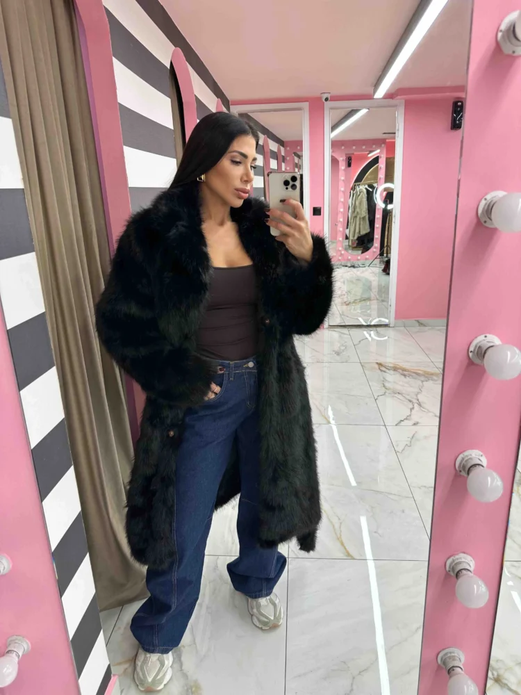 Μαύρη οικολογική γούνα με μακριές ίνες για chic & bold look. Συνδυάζεται άψογα με denim ή φορέματα, χαρίζοντας statement χαρακτήρα σε κάθε outfit.