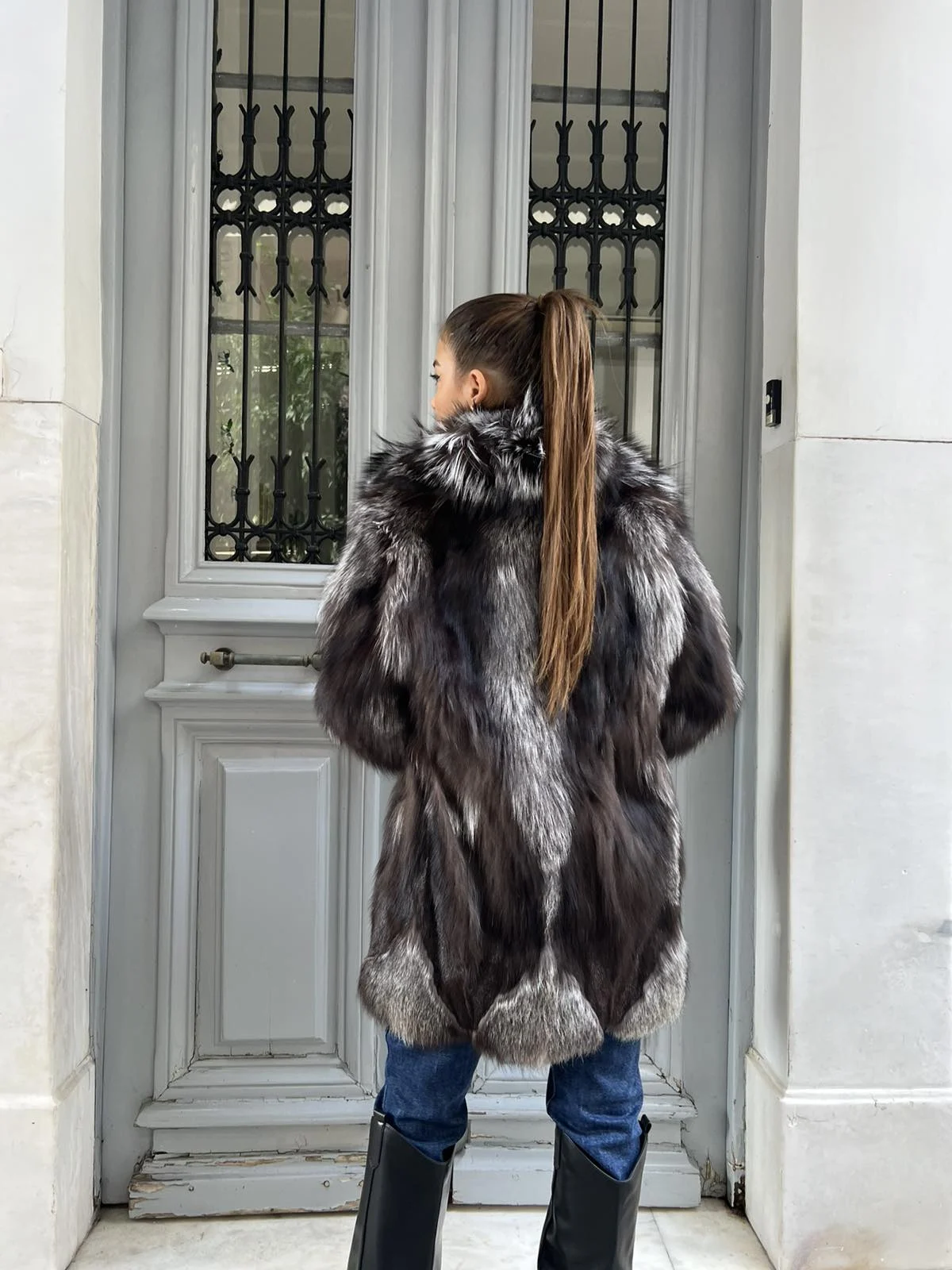 Αυθεντική γούνα από αλεπού σε βαθύ καφέ με ασημί αποχρώσεις. Εντυπωσιακή και διαχρονική, με χειροποίητη λεπτομέρεια και μοναδική υφή. Δεν βγαίνει σε επανάληψη — συλλεκτικό κομμάτι.