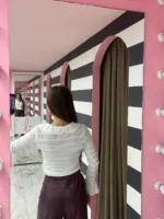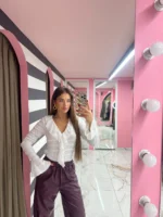 Λευκή μπλούζα με βολάν και ελαστική εφαρμογή, για classy και φωτεινά σύνολα. Συνδυάζεται τέλεια με δερμάτινα ή ψηλόμεσα παντελόνια για minimal chic αποτέλεσμα.