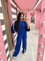 Sporty σετ σε royal blue απόχρωση με λευκές ρίγες. Συνδυάζει άνεση & έντονο στυλ για εντυπωσιακές casual εμφανίσεις.