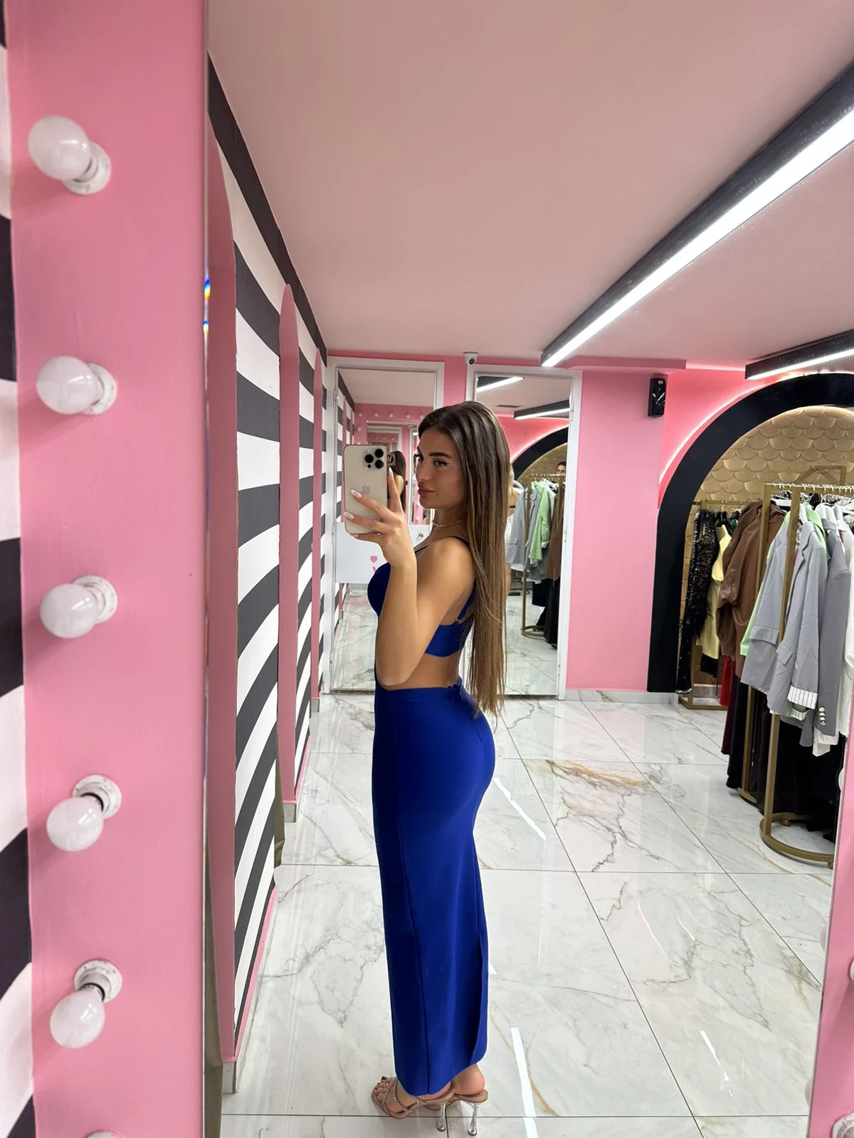 Εντυπωσιακό royal blue φόρεμα με βαθύ ντεκολτέ και statement cut-outs στη μέση που αναδεικνύουν μοναδικά τη σιλουέτα. Εφαρμοστό, ελαστικό και άκρως θηλυκό — ιδανικό για βραδινές εμφανίσεις που θέλεις να ξεχωρίσεις χωρίς προσπάθεια.