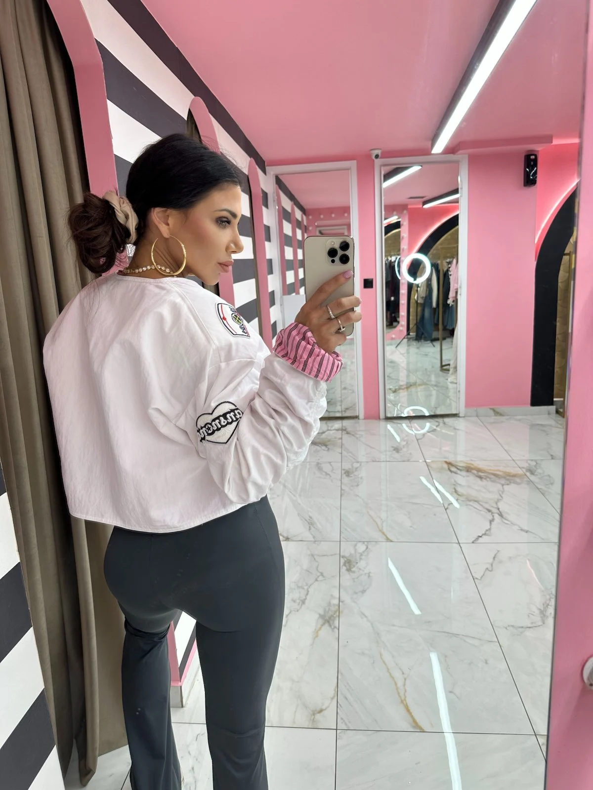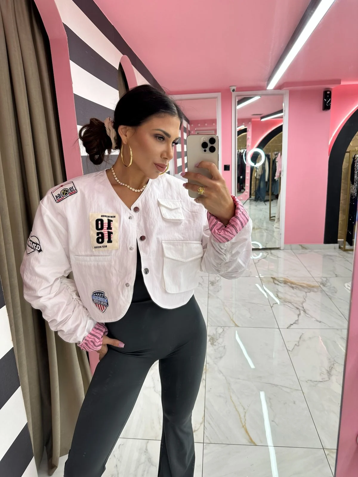 Cropped bomber jacket σε λευκή απόχρωση με patches και ιδιαίτερες λεπτομέρειες. Στυλάτο, άνετο και ευκολοφόρετο για κάθε casual εμφάνιση.