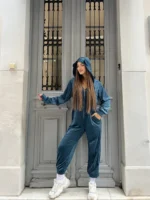 Ολόσωμη φόρμα από απαλό βελούδο σε βαθύ πετρόλ τόνο.