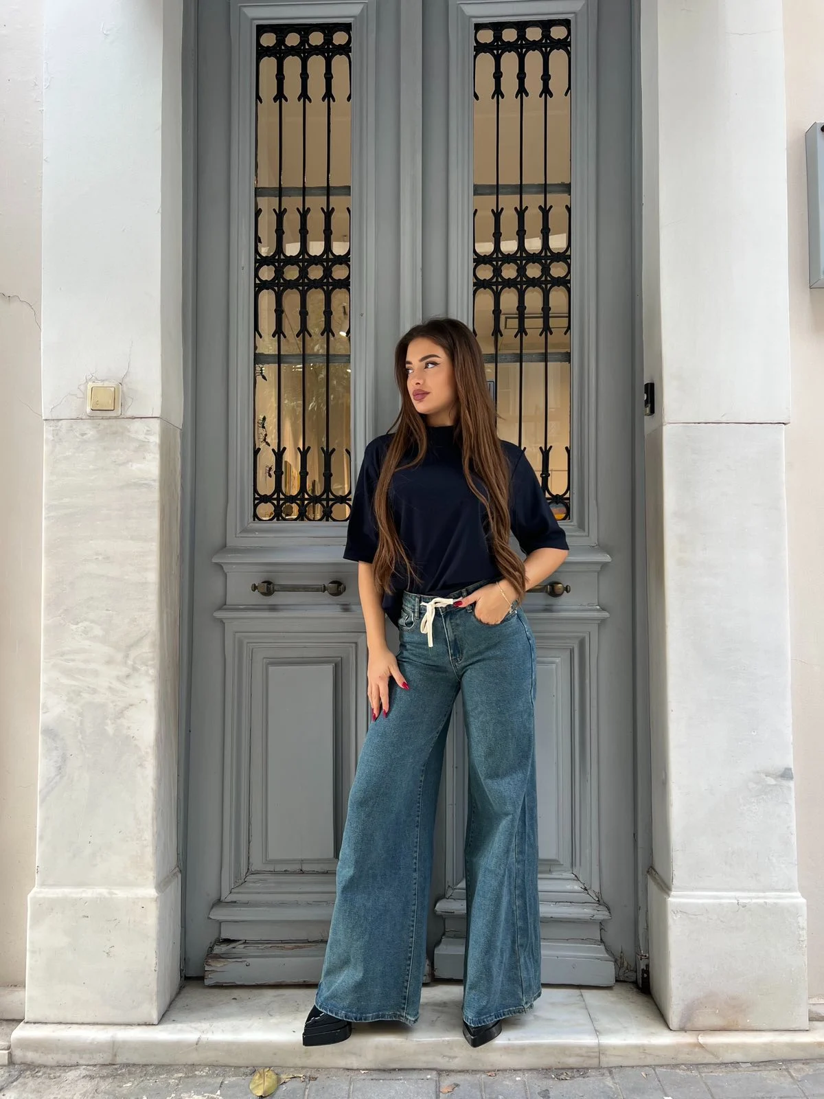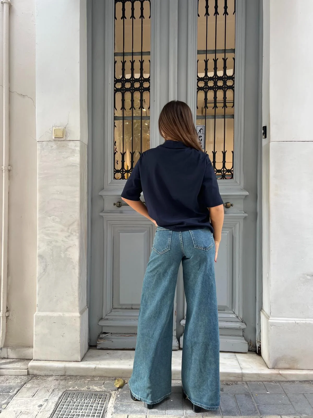 Ψηλόμεσο τζιν σε φαρδιά γραμμή με άψογη εφαρμογή και μαλακό ύφασμα που χαρίζει άνεση όλη μέρα. Το απόλυτο everyday κομμάτι για μοντέρνες και effortless εμφανίσεις.