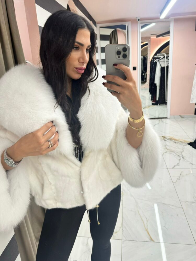 Απαλή οικολογική γούνα σε κρεμ απόχρωση με πλούσιο φινίρισμα τύπου “feather”. Ζεστή, εντυπωσιακή και εξαιρετικά ελαφριά — ιδανική για glam all-day εμφανίσεις.