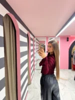 Μπλούζα σε βαθύ μπορντό, με ρομαντικό βολάν και δέσιμο εμπρός. Ιδανική για βραδινές εξόδους ή πιο glam office looks — δίνει αμέσως πολυτέλεια και στυλ.