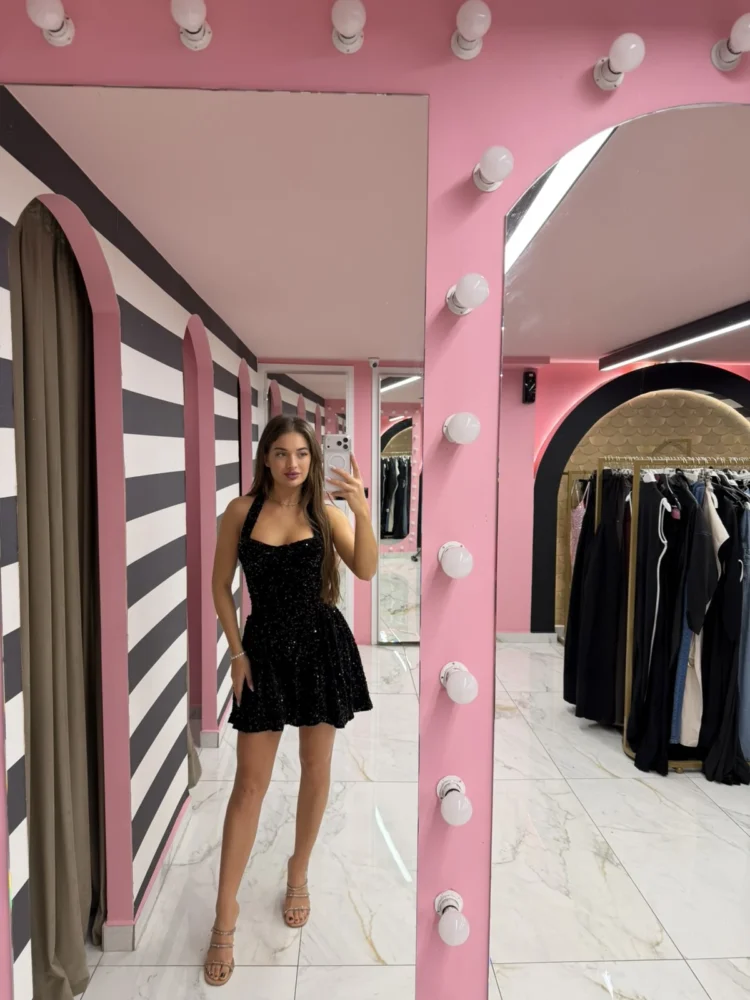 •mini λαμπερό φόρεμα