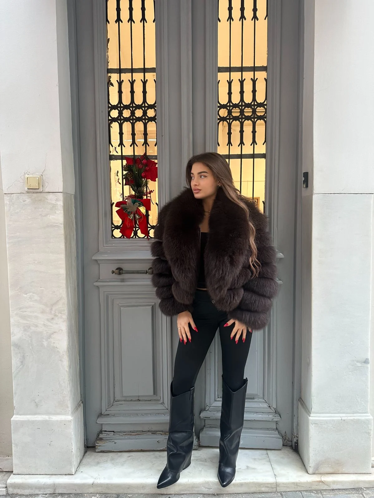 Εντυπωσιακή αληθινή γούνα αλεπούς σε βαθιά σοκολατί απόχρωση, με πλούσιο γιακά και άψογη δομή που αγκαλιάζει το σώμα. Η φυσική γυαλάδα της γούνας χαρίζει πολυτέλεια, ενώ η εφαρμογή της κολακεύει κάθε σιλουέτα. Ένα statement κομμάτι υψηλής αισθητικής, ιδανικό για γυναίκες που αγαπούν τη διαχρονική κομψότητα και το luxury layering. Σε περίπτωση που κάποιο νούμερο δεν είναι άμεσα διαθέσιμο, υπάρχει δυνατότητα κατασκευής κατόπιν παραγγελίας, προσαρμοσμένης στα μέτρα σας. Ο χρόνος παράδοσης είναι έως 10 εργάσιμες ημέρες.