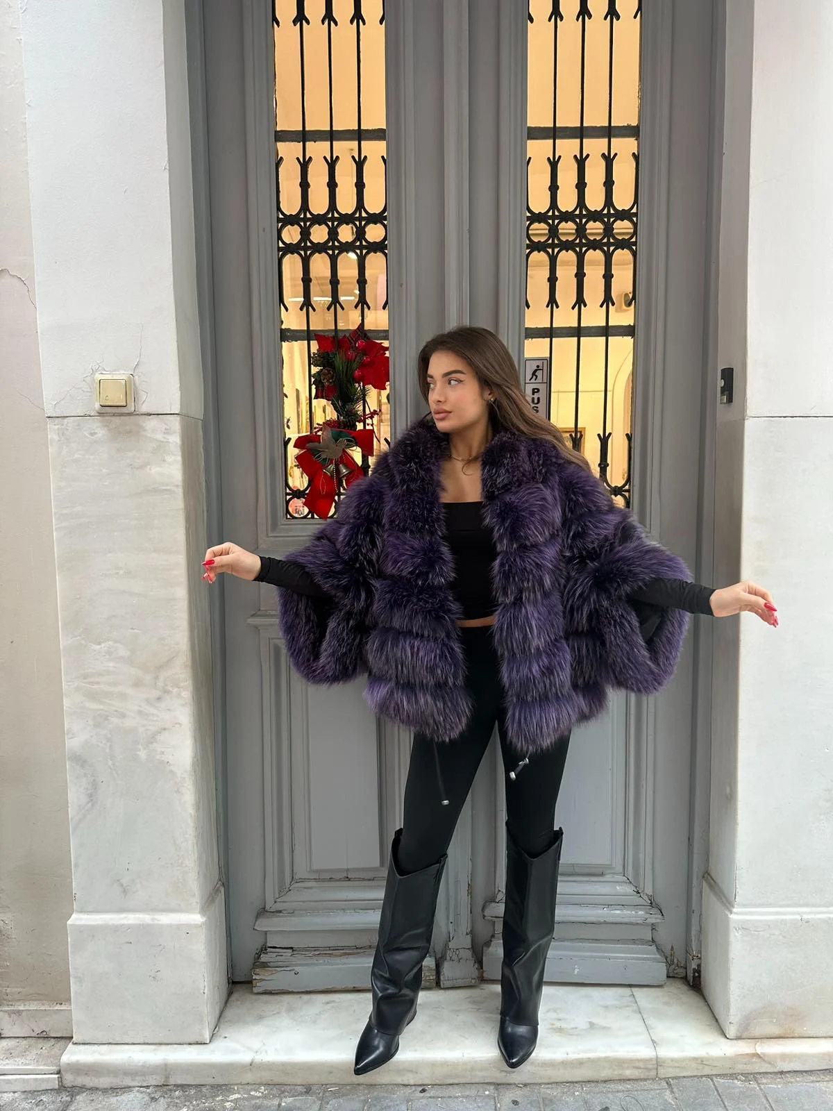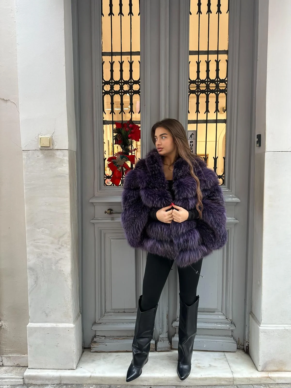 Εξαιρετική μονοκόμματη αληθινή γούνα αλεπούς σε σπάνια amethyst μωβ απόχρωση, με πλούσιο όγκο και εντυπωσιακή φυσική υφή. Η άψογη κατασκευή από ενιαία κομμάτια γούνας αναδεικνύει την ποιότητα και τη δεξιοτεχνία υψηλής ραπτικής, δημιουργώντας ένα statement κομμάτι απόλυτης πολυτέλειας. Ένα couture πανωφόρι για γυναίκες που θέλουν να ξεχωρίζουν χωρίς συμβιβασμούς.Σε περίπτωση που κάποιο νούμερο δεν είναι άμεσα διαθέσιμο, υπάρχει δυνατότητα παραγγελίας κατόπιν μέτρησης. Η γούνα κατασκευάζεται αποκλειστικά για εσάς και παραδίδεται εντός 10 εργάσιμων ημερών. Σε περίπτωση που κάποιο νούμερο δεν είναι άμεσα διαθέσιμο, υπάρχει δυνατότητα κατασκευής κατόπιν παραγγελίας, προσαρμοσμένης στα μέτρα σας. Ο χρόνος παράδοσης είναι έως 10 εργάσιμες ημέρες.