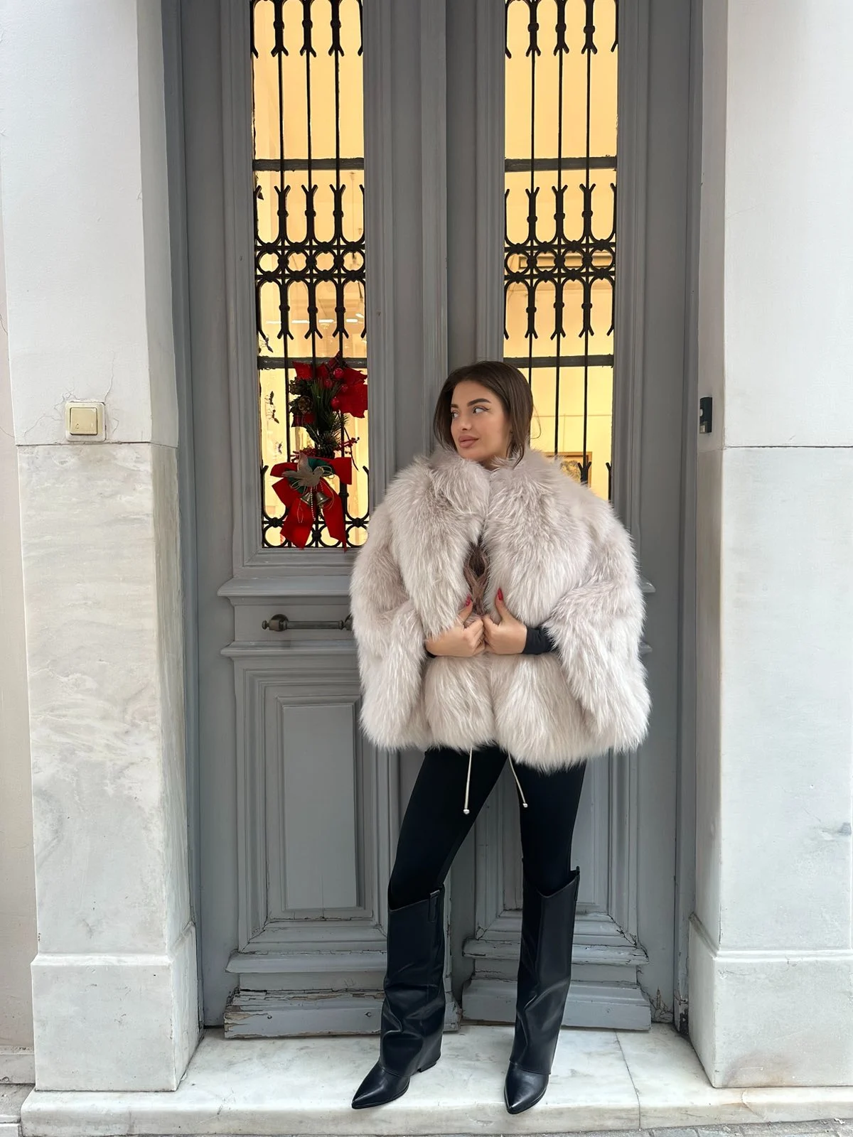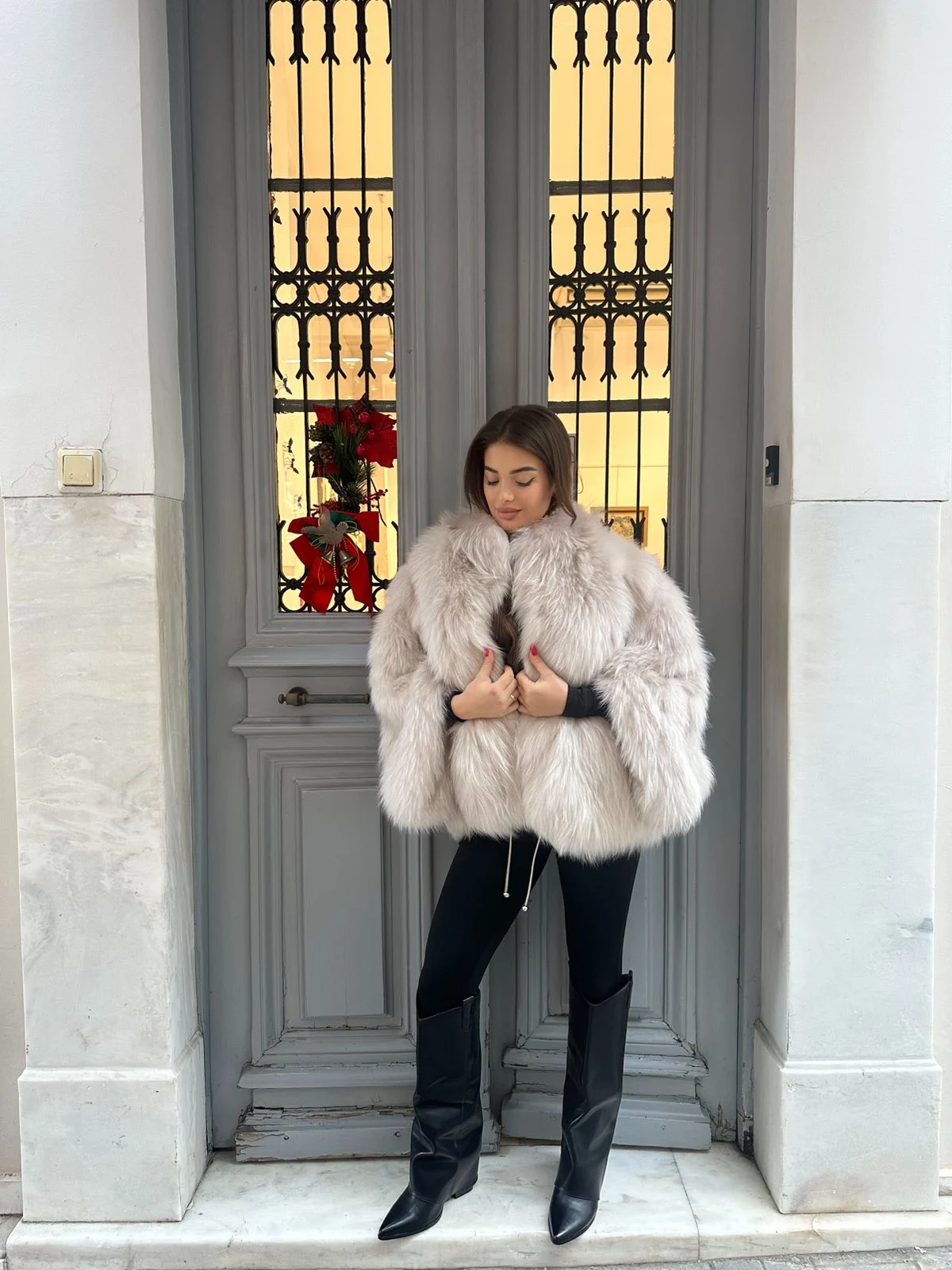 Αληθινή γούνα αλεπού σε απαλό, φυσικό pearl τόνο, με πλούσια υφή και εντυπωσιακό όγκο που χαρίζει αίσθηση πολυτέλειας από την πρώτη στιγμή. Η άνετη γραμμή και το φίνο φινίρισμα δημιουργούν ένα κομψό και διαχρονικό αποτέλεσμα, ιδανικό τόσο για καθημερινές elegant εμφανίσεις όσο και για πιο ιδιαίτερες περιστάσεις. Ένα κομμάτι που συνδυάζει ζεστασιά, άνεση και υψηλή αισθητική.Σε περίπτωση που κάποιο νούμερο δεν είναι άμεσα διαθέσιμο, υπάρχει δυνατότητα κατασκευής κατόπιν παραγγελίας, προσαρμοσμένης στα μέτρα σας. Ο χρόνος παράδοσης είναι έως 10 εργάσιμες ημέρες.