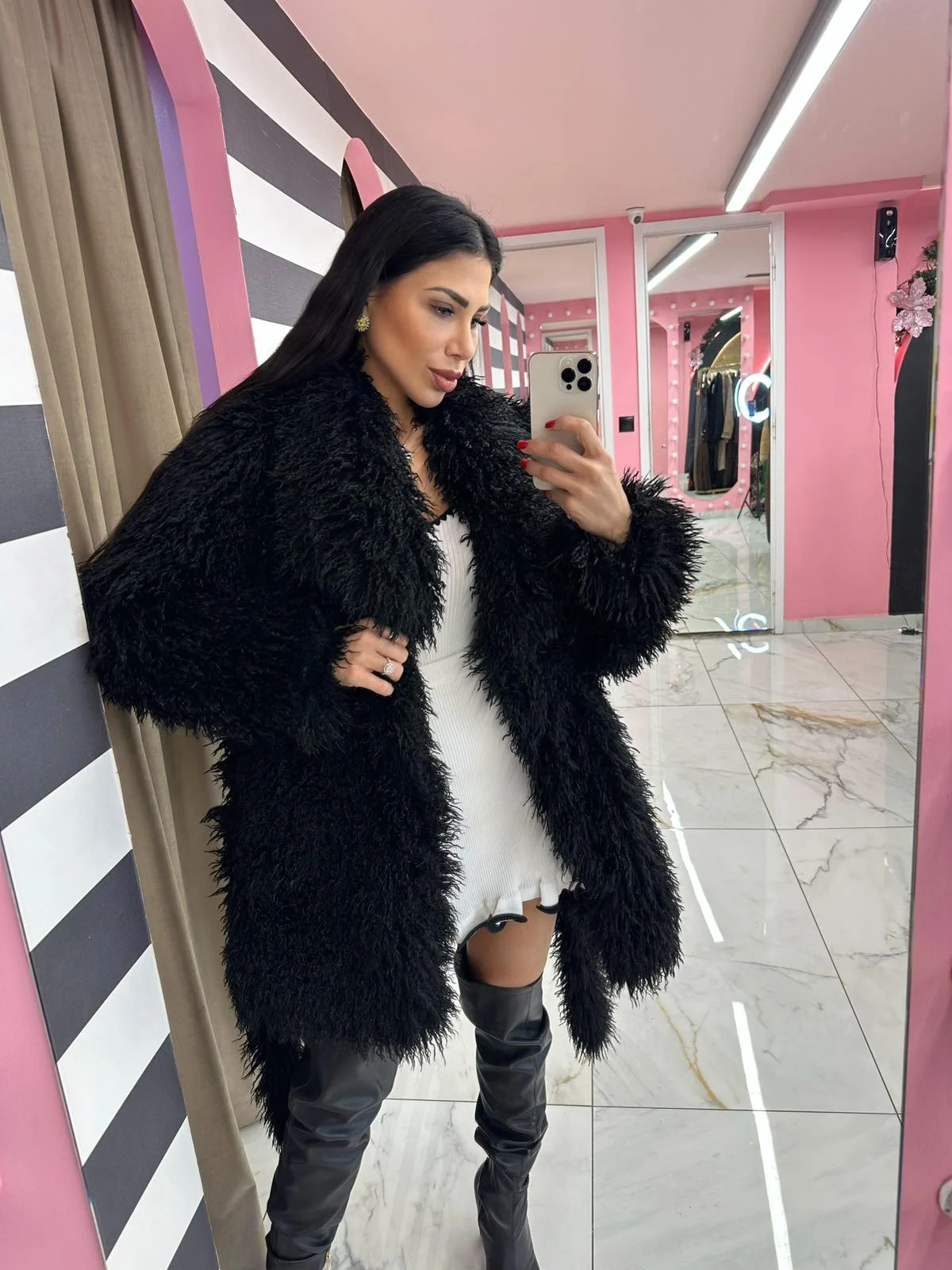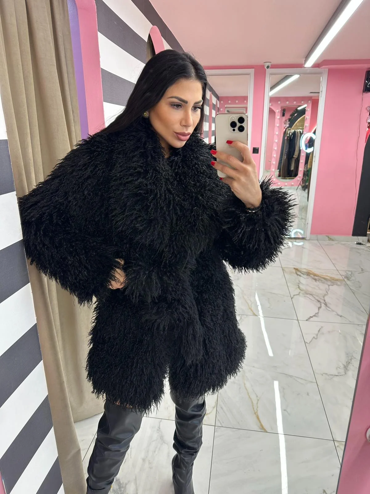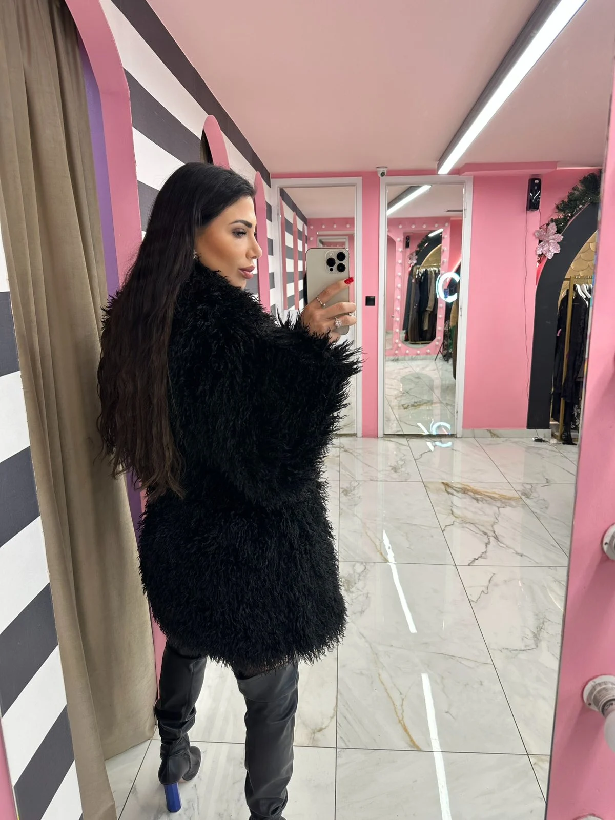 Εντυπωσιακή οικολογική γούνα σε βαθύ μαύρο χρώμα με πλούσια, shaggy υφή που χαρίζει ένταση και δυναμισμό σε κάθε εμφάνιση. Statement κομμάτι που φοριέται από το πρωί μέχρι το βράδυ, αναβαθμίζοντας ακόμα και το πιο απλό outfit με fashion attitude.
