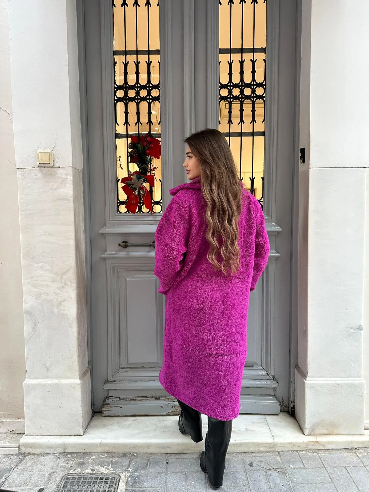 Εντυπωσιακή οικολογική γούνα σε έντονο φούξια χρώμα, για εμφανίσεις που δεν περνούν απαρατήρητες. Ζεστή, απαλή και άνετη, με μακριά γραμμή που κολακεύει τη σιλουέτα και δίνει fashion-forward αποτέλεσμα.