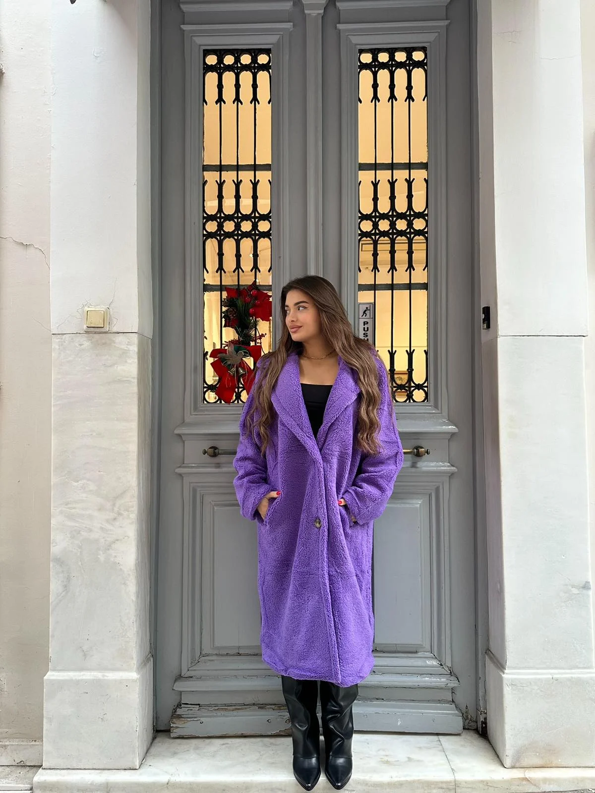Statement οικολογική γούνα σε μοναδική λιλά/μωβ απόχρωση που αναβαθμίζει κάθε εμφάνιση. Ζεστή, ανάλαφρη και εξαιρετικά απαλή, προσφέρει fashion χαρακτήρα χωρίς να χάνει την άνεσή της.