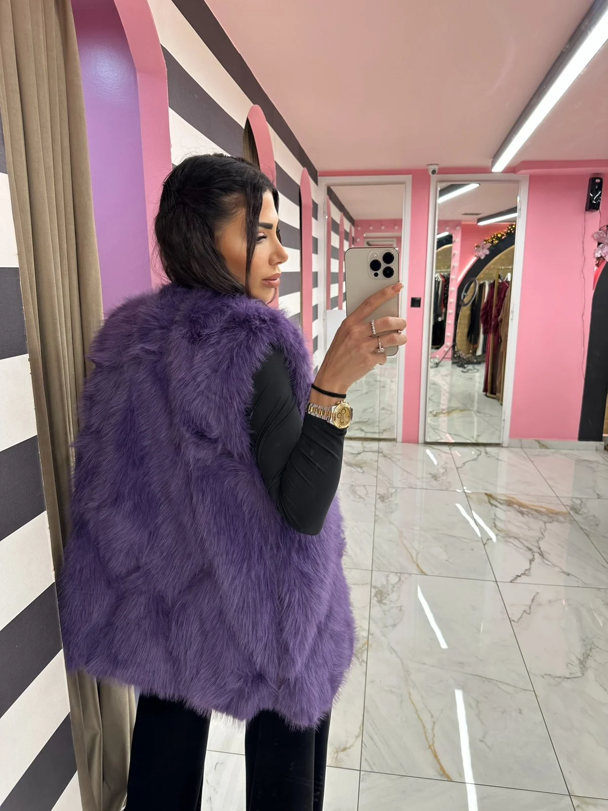 Statement οικολογική γούνα σε μωβ χρώμα για εμφανίσεις που ξεχωρίζουν και αναδεικνύουν το στυλ.