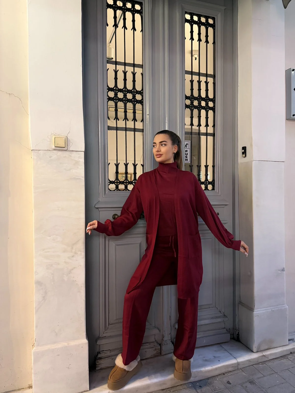 Βαθύ μπορντό χρώμα με luxurious vibe. Ένα σετ που ξεχωρίζει για τη θηλυκότητα και τη δυναμική του, ιδανικό για όσες θέλουν κάτι ιδιαίτερο χωρίς υπερβολή.