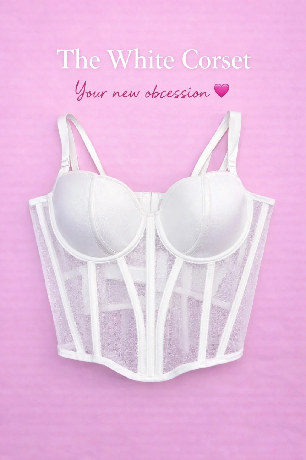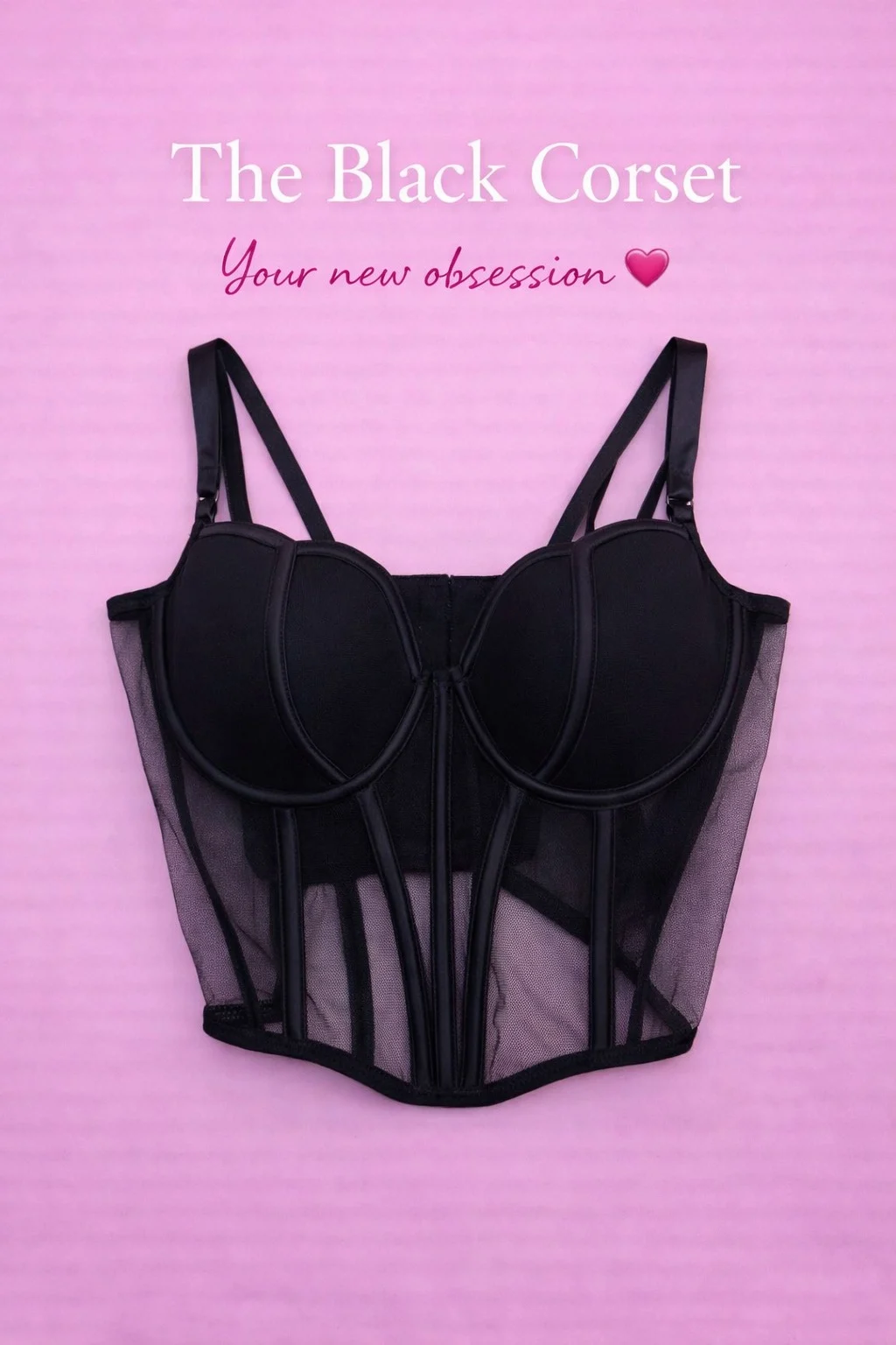 Κομψό corset top που αναδεικνύει τη σιλουέτα με structured μπούστο και διακριτικό mesh ύφασμα. Δημιουργεί ένα sexy αλλά ταυτόχρονα elegant αποτέλεσμα και είναι ιδανικό για βραδινές εμφανίσεις αλλά και stylish outfits.