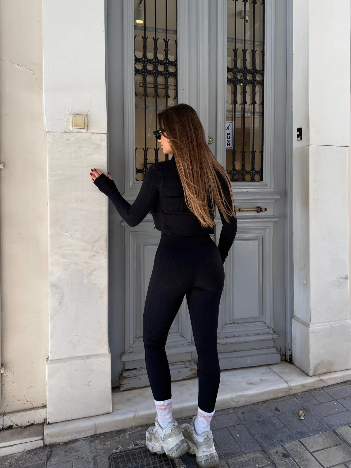 Αποτελείται από top και ψηλόμεσο κολάν, ιδανικό για all day εμφανίσεις από πρωί μέχρι βράδυ.
