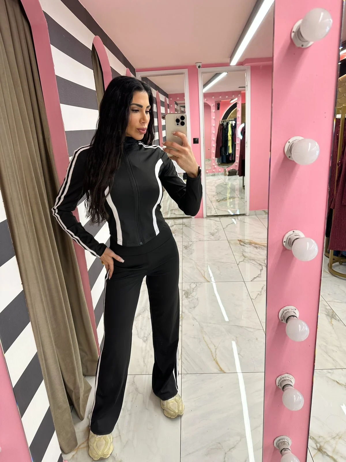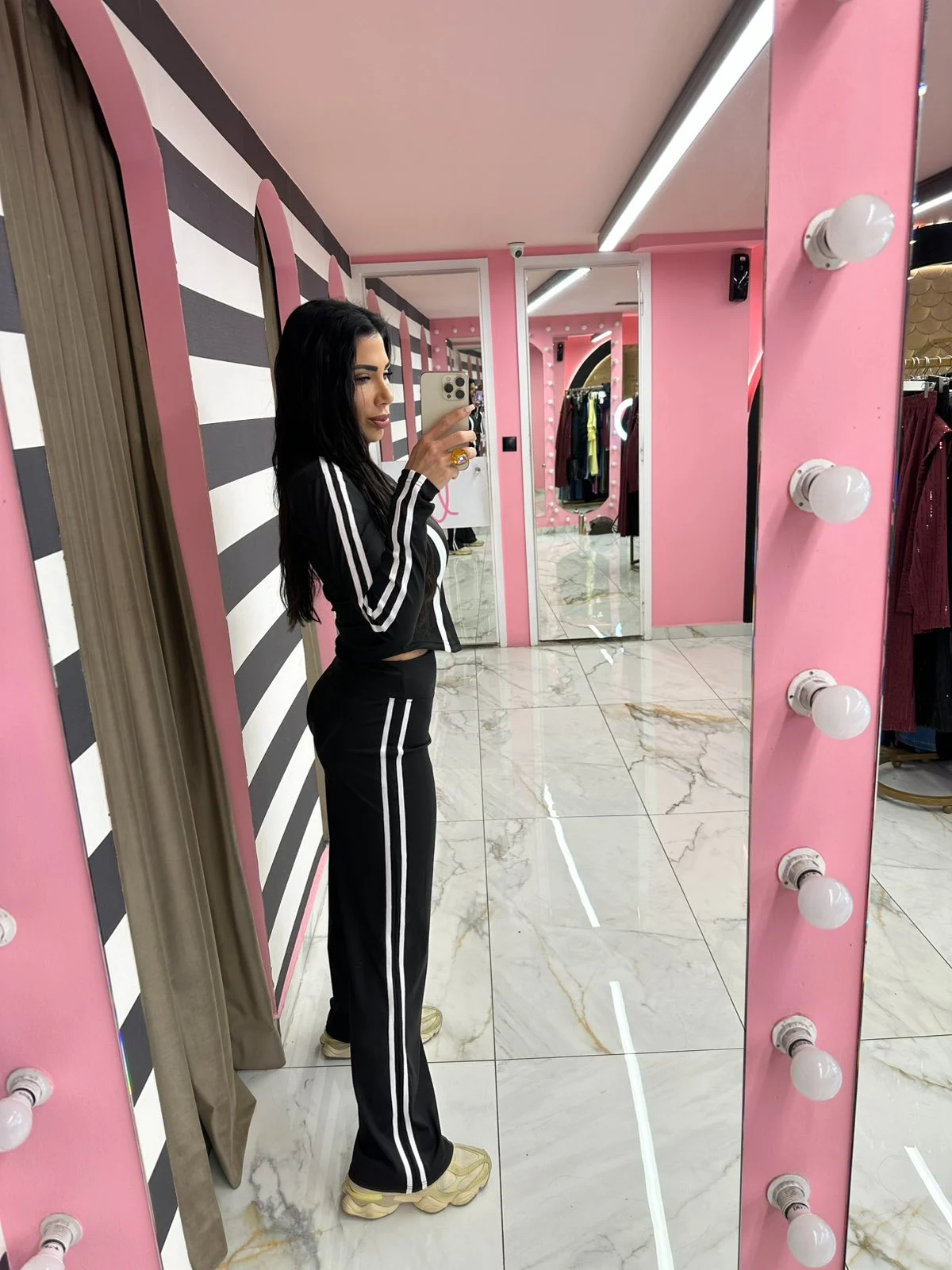 Casual αλλά super στυλάτο σετ που αγκαλιάζει το σώμα και τονίζει τη σιλουέτα. Η ζακέτα με φερμουάρ και οι πλαϊνές ρίγες δίνουν sporty χαρακτήρα, ενώ το παντελόνι σε ίσια – ελαφρώς καμπάνα γραμμή μακραίνει οπτικά τα πόδια. Ιδανικό για καθημερινές εμφανίσεις, βόλτες ή ταξίδια, φοριέται άνετα με sneakers για effortless street look.