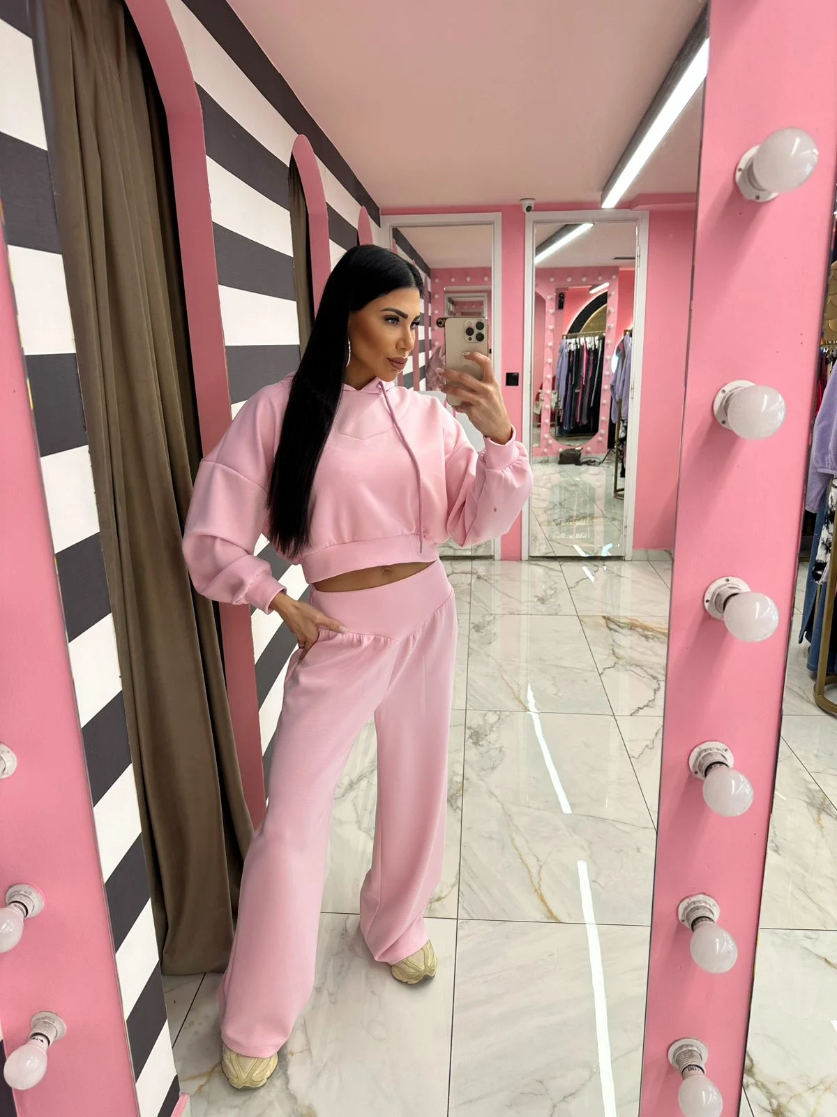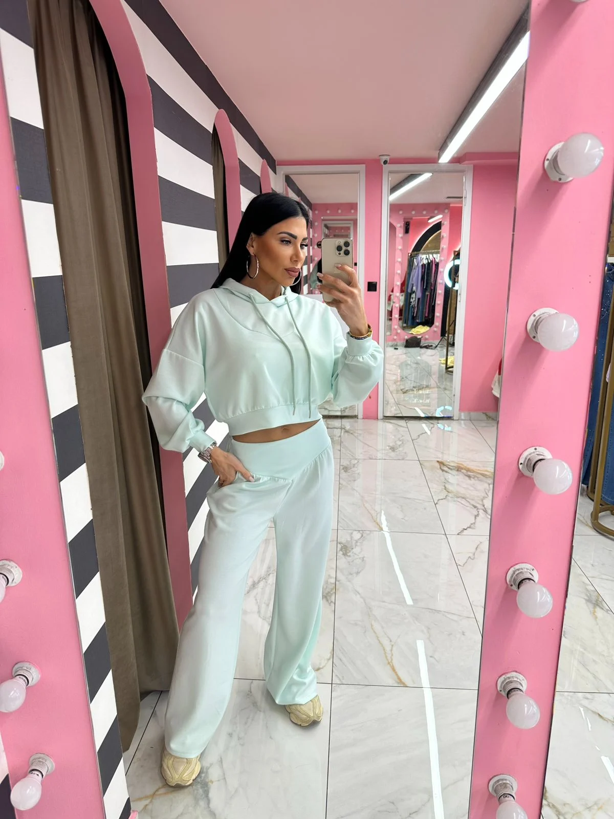 Απόλυτα άνετο και ταυτόχρονα στυλάτο σετ φόρμας που θα φοράς από το πρωί μέχρι το βράδυ. Το cropped hoodie με κουκούλα αγκαλιάζει όμορφα το σώμα, ενώ το ψηλόμεσο παντελόνι με χαλαρή γραμμή χαρίζει άνεση και κομψή σιλουέτα. Μαλακό ύφασμα με τέλεια εφαρμογή — ιδανικό για καθημερινές εμφανίσεις, ταξίδια αλλά και sporty-chic looks με sneakers.