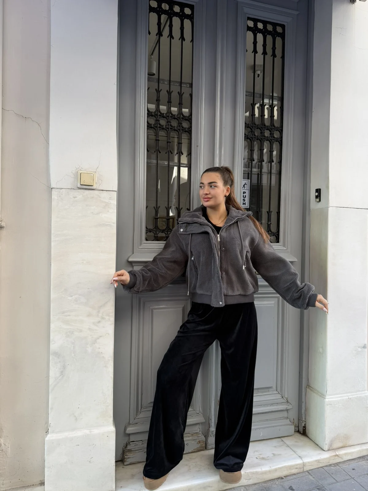 Μαλακό teddy jacket σε κομψή γκρι απόχρωση, ιδανικό για καθημερινές εμφανίσεις με στυλ. Ζεστό αλλά ελαφρύ, με άνετη εφαρμογή και minimal αισθητική που συνδυάζεται εύκολα από το πρωί έως το βράδυ.