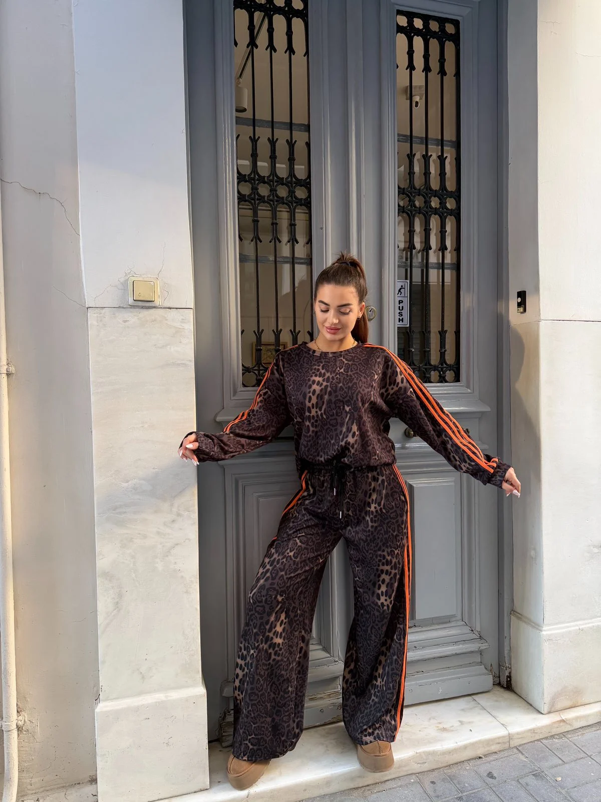 Fashion forward leopard σετ με πορτοκαλί ρίγα για ξεχωριστές casual εμφανίσεις. Μαλακή υφή, άνετη εφαρμογή και μοντέρνο design που ξεχωρίζει χωρίς προσπάθεια.