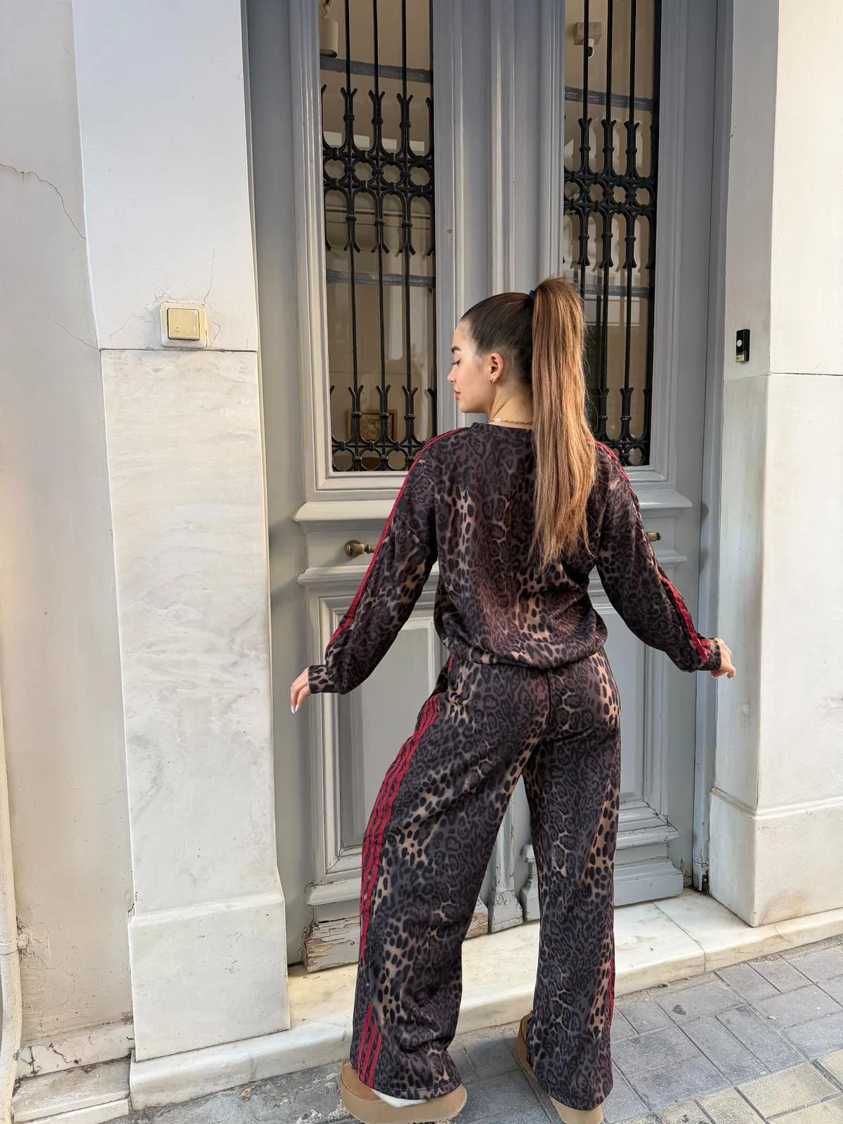 Δυναμικό leopard σετ με κόκκινη ρίγα που δίνει sporty αλλά και bold αισθητική. Άνετο παντελόνι με λάστιχο και loose μπλούζα για απόλυτη ελευθερία κινήσεων. Φοριέται από το πρωί μέχρι το βράδυ.