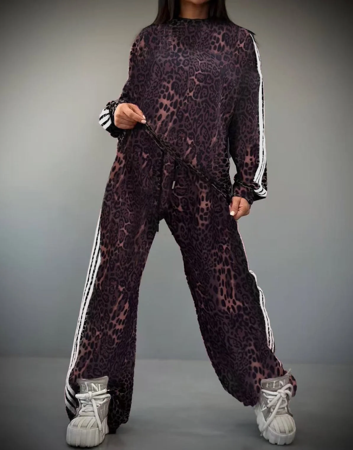 Στυλάτο σετ με animal print και λευκή πλαϊνή ρίγα που προσθέτει καθαρή και μοντέρνα πινελιά. Ισορροπεί τέλεια ανάμεσα σε άνεση και fashion street look.