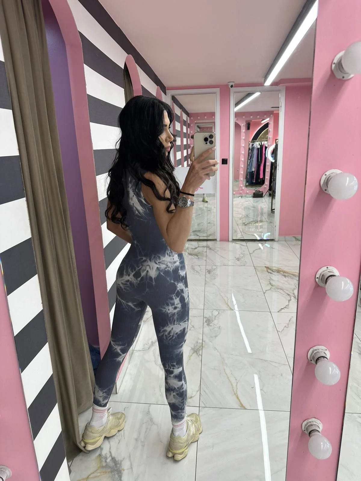 Minimal αλλά δυναμική, αυτή η γκρι ολόσωμη φόρμα προσφέρει κομψό sporty look. Το σχέδιο δημιουργεί φυσικές “σκιές” που κάνουν το σώμα να δείχνει πιο καλοσχηματισμένο και γραμμωμένο.