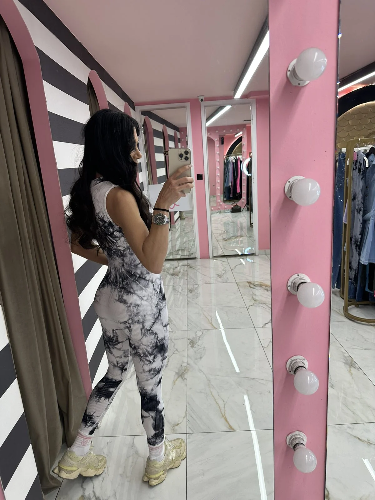 Εντυπωσιακή ολόσωμη φόρμα με marble σχέδιο που αναδεικνύει τις καμπύλες και δίνει sleek, μοντέρνο ύφος. Αγκαλιάζει το σώμα, τονίζει τη μέση και δημιουργεί πιο γραμμωμένη σιλουέτα. Ιδανική για sporty εμφανίσεις αλλά και για all day athleisure looks.