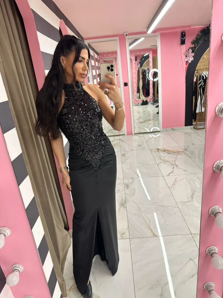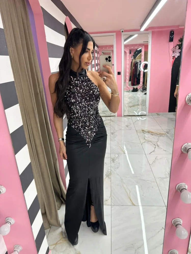 Black Sequin Halter Maxi Dress