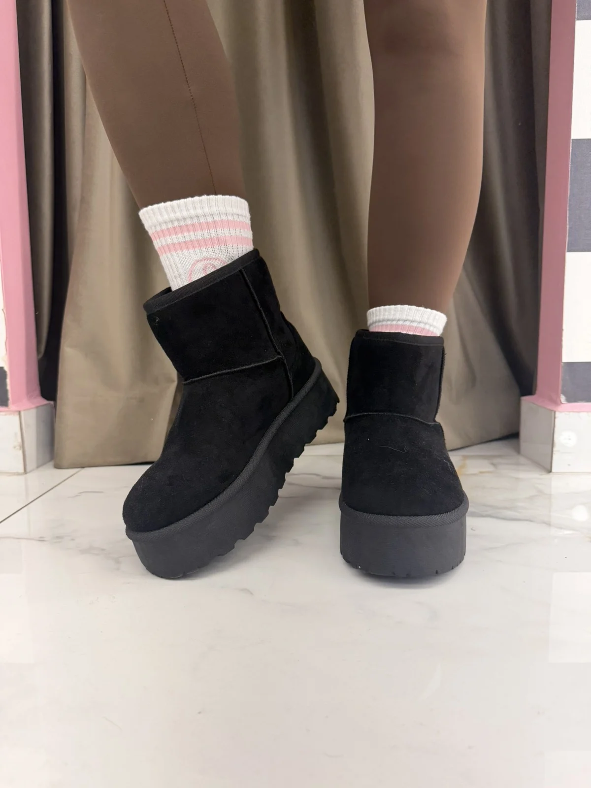 Minimal χαμηλό μποτάκι σε μαύρο χρώμα με πλατφόρμα και άνετη εφαρμογή. Must-have κομμάτι για τον χειμώνα, φοριέται από το πρωί μέχρι το βράδυ και ταιριάζει με τα πάντα.